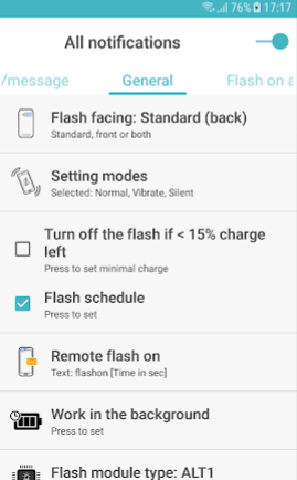 - يمكنك اختيار المدة التي يعمل عليها الفلاش اثناء اي من الاشعارات