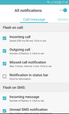 طريقة تشغيل الفلاش مع المكالمات والرسائل والاشعارات